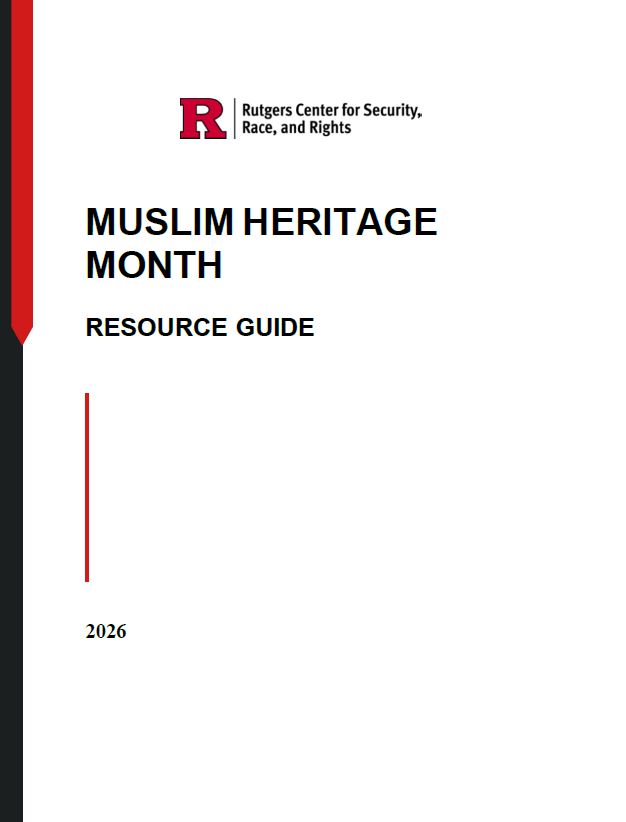 The Rutgers Law Center for Security Race and Rights (CSRR) has developed a resource guide to assist school districts seeking to expand educational programming about the rich heritage and diverse experiences of New Jersey’s over 325,000 Muslim residents. The Muslim Heritage Month Resource Guide advances school districts’ educational mission by deepening students’ cultural competency, critical thinking skills, and global awareness.